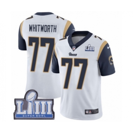 >Youth Nike Los Angeles Rams #77 Andrew Whitworth White Vapor Untouchable Limited Player Super Bowl LIII Bound NFL Jersey