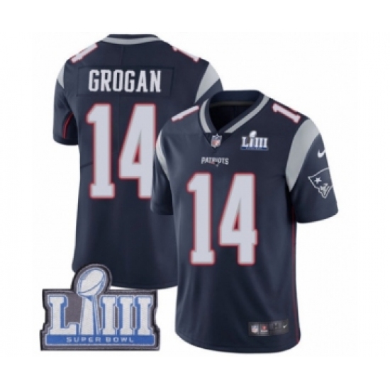 Men's Nike New England Patriots #14 Steve Grogan Navy Blue Team Color Vapor Untouchable Limited Player Super Bowl LIII Bound NFL Jersey