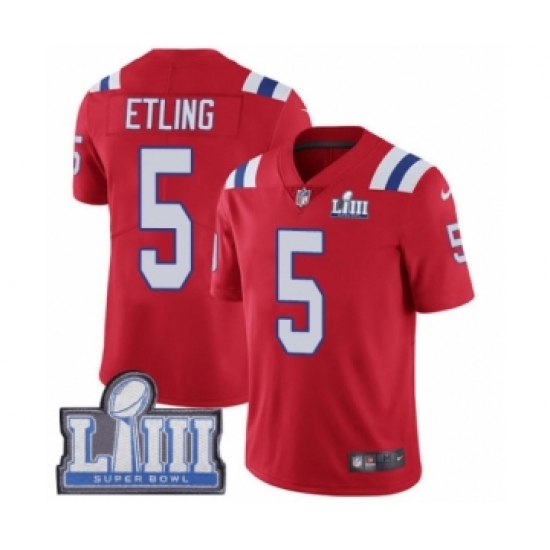 >Youth Nike New England Patriots #5 Danny Etling Red Alternate Vapor Untouchable Limited Player Super Bowl LIII Bound NFL Jersey