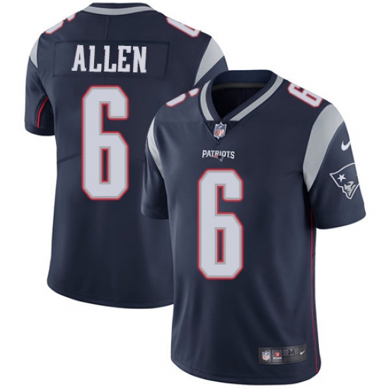 Home>NFL>New England Patriots>Ryan Allen>Youth Nike New England Patriots #6 Ryan Allen Navy Blue Team Color Vapor Untouchable Limited Player NFL Jersey