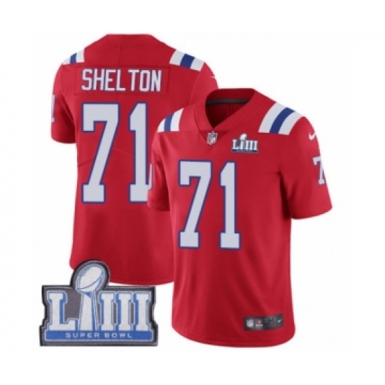 Men's Nike New England Patriots #71 Danny Shelton Red Alternate Vapor Untouchable Limited Player Super Bowl LIII Bound NFL