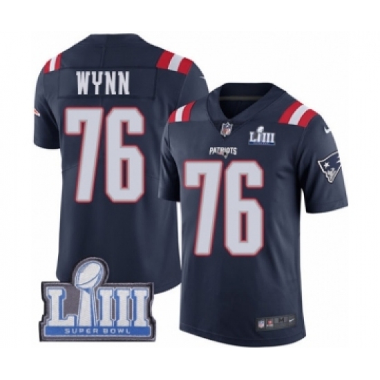 Youth Nike New England Patriots #76 Isaiah Wynn Limited Navy Blue Rush Vapor Untouchable Super Bowl LIII Bound NFL Jersey