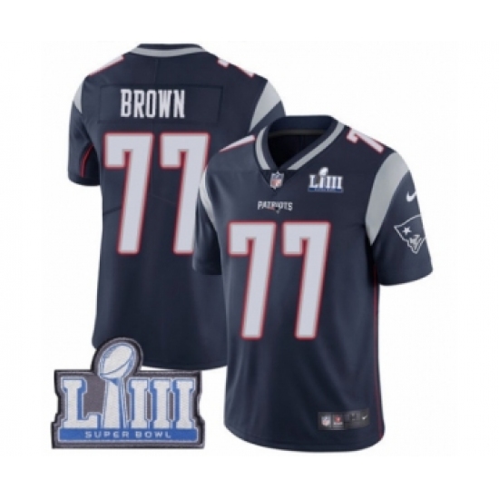 Youth Nike New England Patriots #77 Trent Brown Navy Blue Team Color Vapor Untouchable Limited Player Super Bowl LIII Bound NFL Jersey