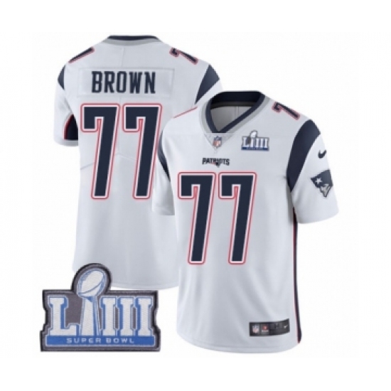 Youth Nike New England Patriots #77 Trent Brown White Vapor Untouchable Limited Player Super Bowl LIII Bound NFL Jersey