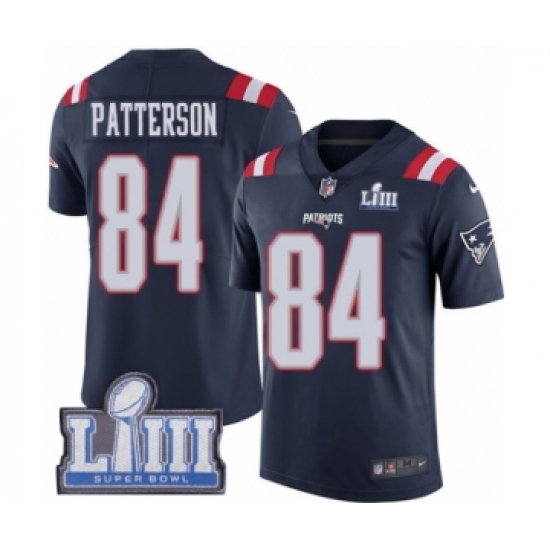 >Youth Nike New England Patriots #84 Cordarrelle Patterson Limited Navy Blue Rush Vapor Untouchable Super Bowl LIII Bound NFL Jersey