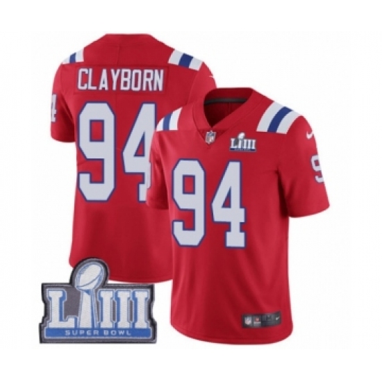 Men's Nike New England Patriots #94 Adrian Clayborn Red Alternate Vapor Untouchable Limited Player Super Bowl LIII Bound NFL Jersey