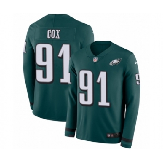 >Youth Nike Philadelphia Eagles #91 Fletcher Cox Limited Green Therma Long Sleeve NFL Jersey