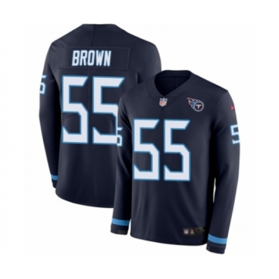 Youth Nike Tennessee Titans #55 Jayon Brown Limited Navy Blue Therma Long Sleeve NFL Jersey