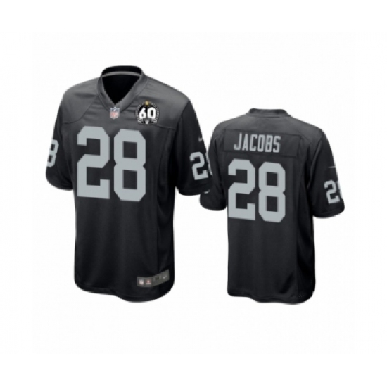 >Youth Oakland Raiders #28 Josh Jacobs Game Black 60th Anniversary Team Color Football Jersey
