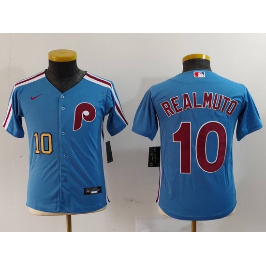 >Youth Philadelphia Phillies #10 JT Realmuto Light Blue Cooperstown Cool Base Jerseys