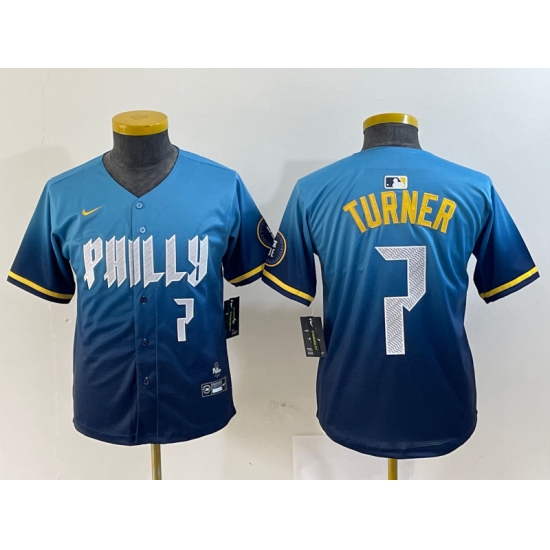 Youth Philadelphia Phillies #7 Trea Turner Blue 2024 City Connect Limited Stitched Jersey