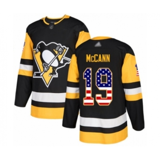 >Youth Pittsburgh Penguins #19 Jared McCann Authentic Black USA Flag Fashion Hockey Jersey