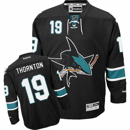 Home>NHL>San Jose Sharks>Joe Thornton>Youth Reebok San Jose Sharks #19 Joe Thornton Authentic Black Third NHL Jersey