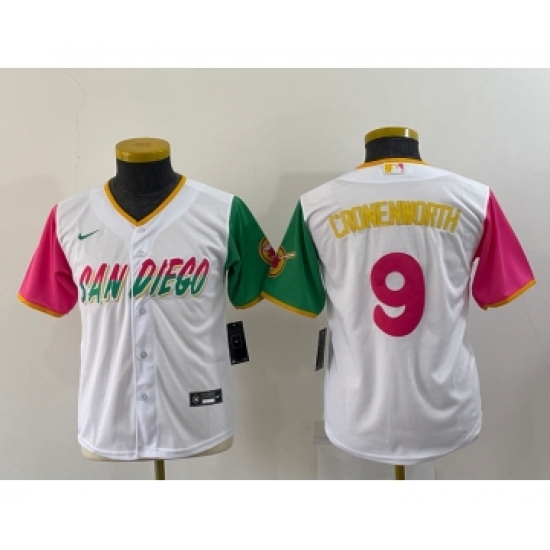 >Youth San Diego Padres #9 Jake Cronenworth White 2022 City Connect Cool Base Stitched Jersey