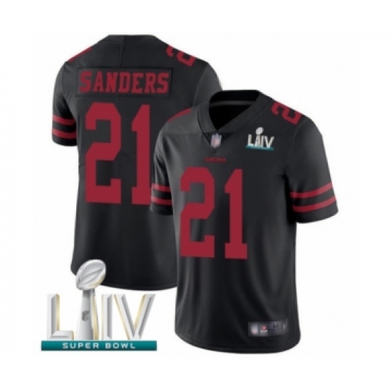 >Youth San Francisco 49ers #21 Deion Sanders Black Vapor Untouchable Limited Player Super Bowl LIV Bound Football Jersey