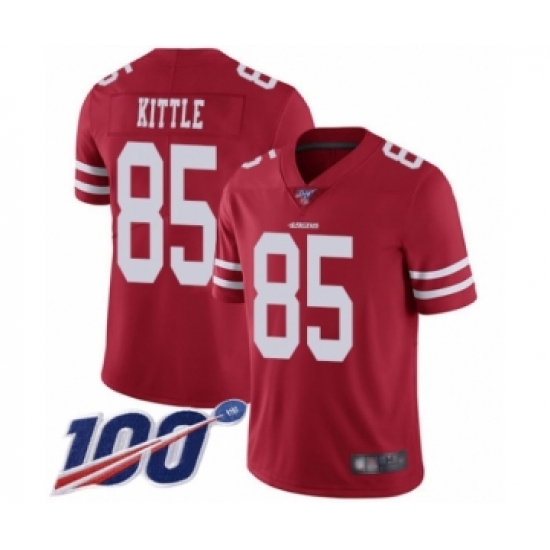 Men's San Francisco 49ers #85 George Kittle Red Team Color Vapor Untouchable Limited Player 100th Season Football Jersey