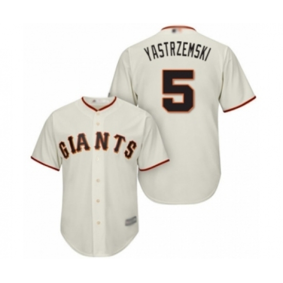 >Youth San Francisco Giants #5 Mike Yastrzemski Authentic Cream Home Cool Base Baseball Player Jersey