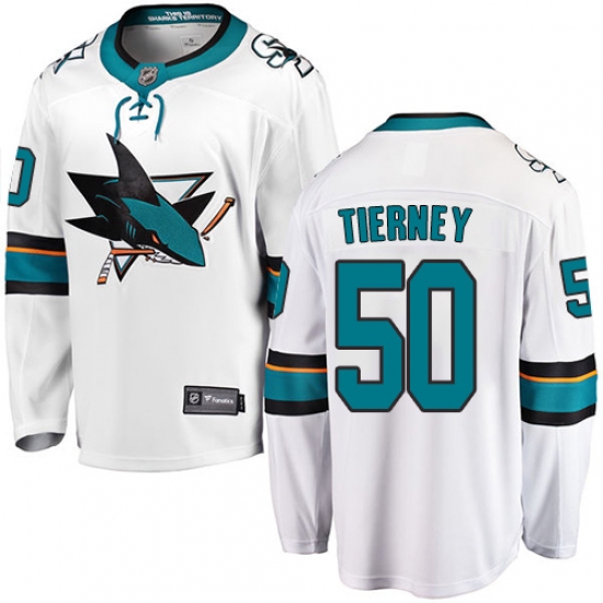 Home>NHL>San Jose Sharks>Chris Tierney>Youth San Jose Sharks #50 Chris Tierney Fanatics Branded White Away Breakaway NHL Jersey