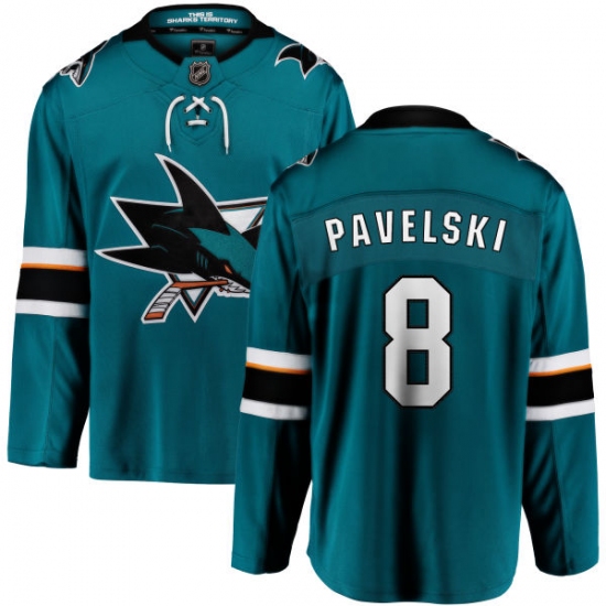 Home>NHL>San Jose Sharks>Joe Pavelski>Youth San Jose Sharks #8 Joe Pavelski Fanatics Branded Teal Green Home Breakaway NHL Jersey