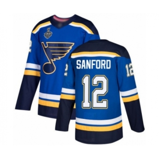 >Youth St. Louis Blues #12 Zach Sanford Authentic Royal Blue Home 2019 Stanley Cup Final Bound Hockey Jersey