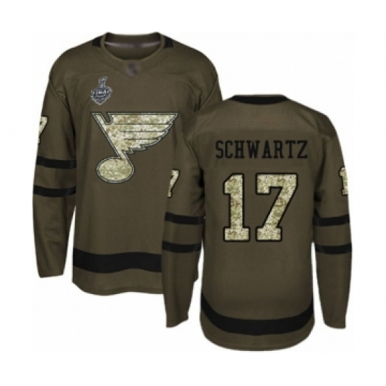 Youth St. Louis Blues #17 Jaden Schwartz Premier Green Salute to Service 2019 Stanley Cup Final Bound Hockey Jersey