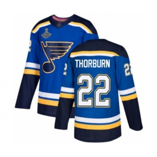 Youth St. Louis Blues #22 Chris Thorburn Authentic Royal Blue Home 2019 Stanley Cup Champions Hockey Jersey