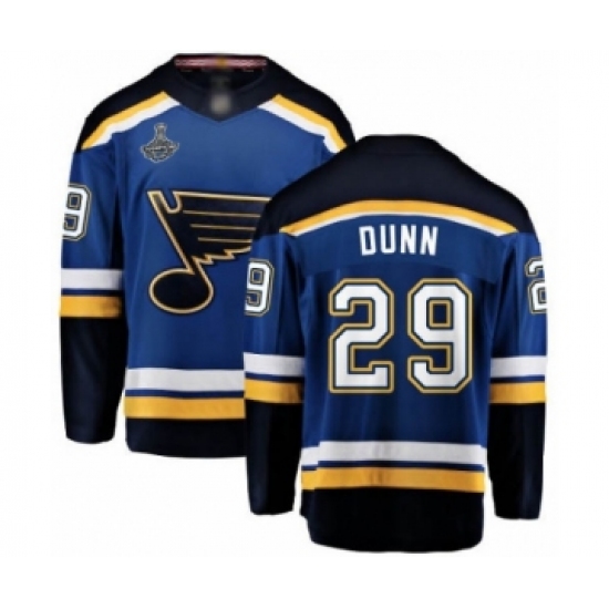 >Youth St. Louis Blues #29 Vince Dunn Fanatics Branded Royal Blue Home Breakaway 2019 Stanley Cup Champions Hockey Jersey