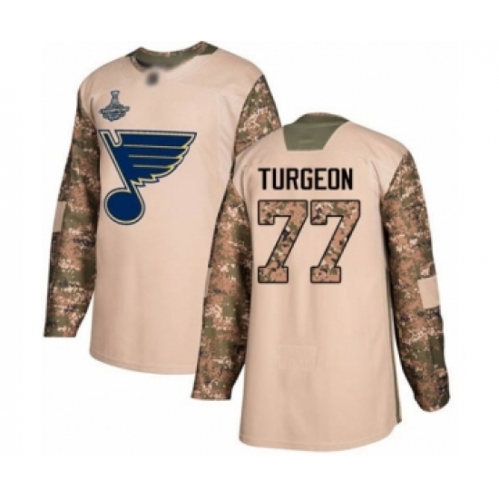 Youth St. Louis Blues #77 Pierre Turgeon Authentic Camo Veterans Day Practice 2019 Stanley Cup Champions Hockey Jersey