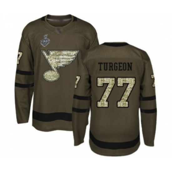 >Youth St. Louis Blues #77 Pierre Turgeon Authentic Green Salute to Service 2019 Stanley Cup Final Bound Hockey Jersey