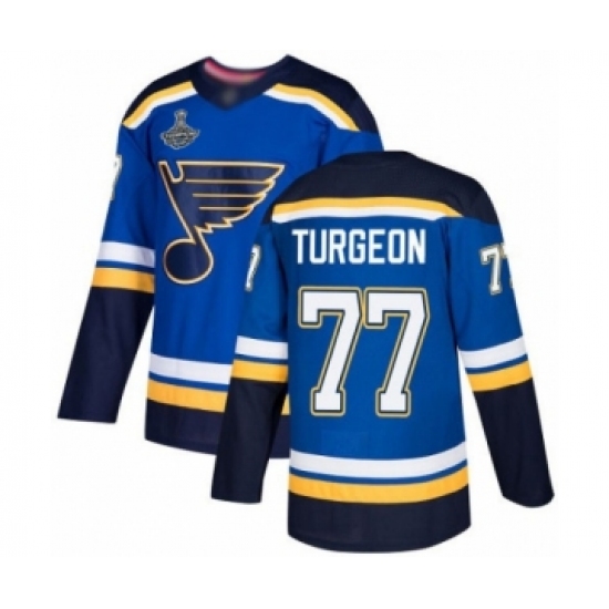 Men's St. Louis Blues #77 Pierre Turgeon Authentic Royal Blue Home 2019 Stanley Cup Champions Hockey Jersey