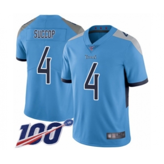 >Youth Tennessee Titans #4 Ryan Succop Light Blue Alternate Vapor Untouchable Limited Player 100th Season Football Jersey