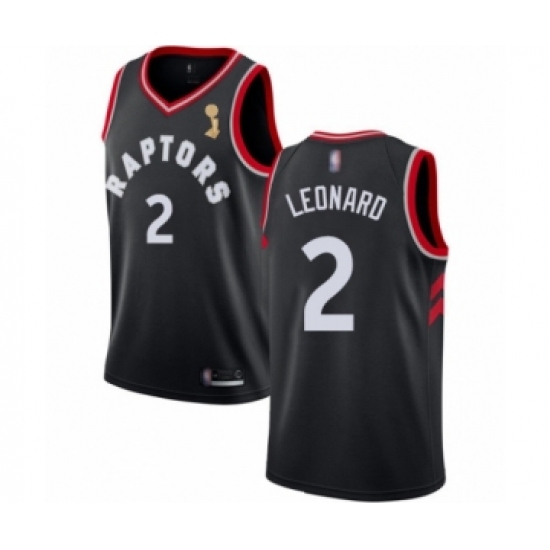 >Youth Toronto Raptors #2 Kawhi Leonard Swingman Black 2019 Basketball Finals Champions Jersey Statement Edition