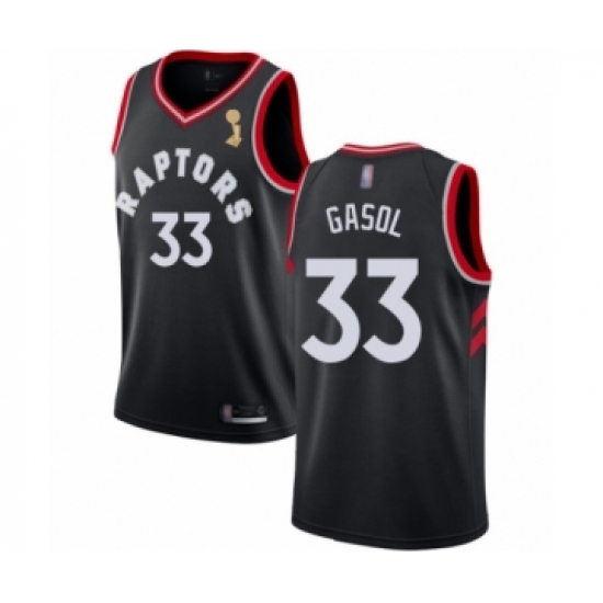 Youth Toronto Raptors #33 Marc Gasol Swingman Black 2019 Basketball Finals Champions Jersey Statement Edition