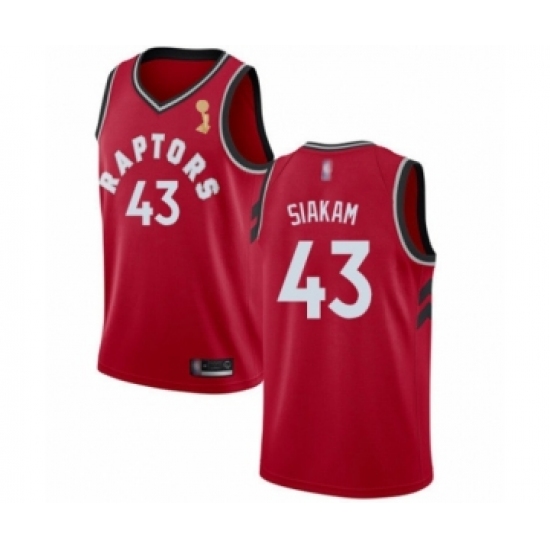 >Youth Toronto Raptors #43 Pascal Siakam Swingman Red 2019 Basketball Finals Champions Jersey - Icon Edition