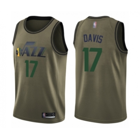 >Youth Utah Jazz #17 Ed Davis Swingman Green Salute to Service Basketball Jersey
