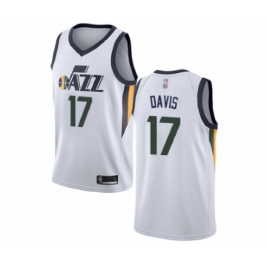 Men's Utah Jazz #17 Ed Davis Authentic White Basketball Jersey - Association Edition