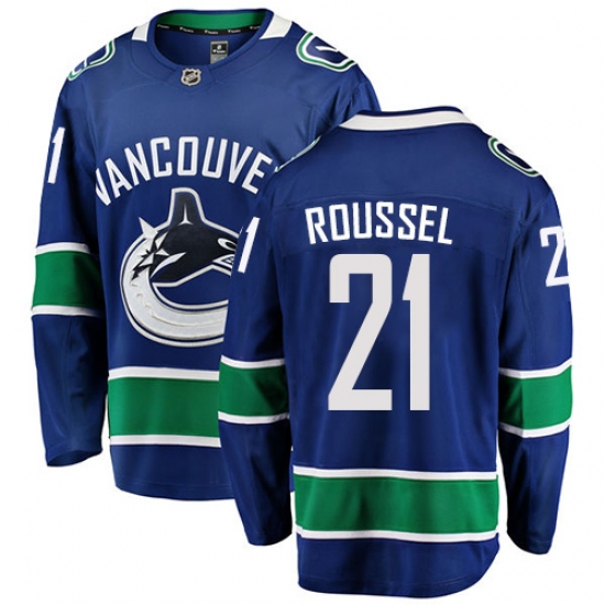 >Youth Vancouver Canucks #21 Antoine Roussel Fanatics Branded Blue Home Breakaway NHL Jersey