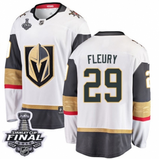 Men's Vegas Golden Knights #29 Marc-Andre Fleury Authentic White Away Fanatics Branded Breakaway 2018 Stanley Cup Final NHL Jersey