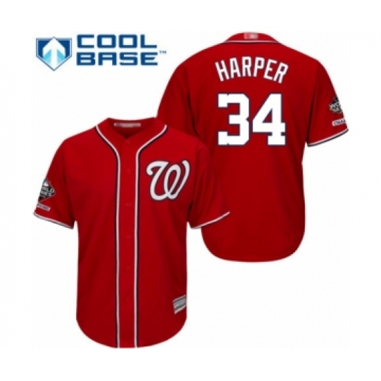 >Youth Washington Nationals #34 Bryce Harper Authentic Red Alternate 1 Cool Base 2019 World Series Champions Baseball Jersey