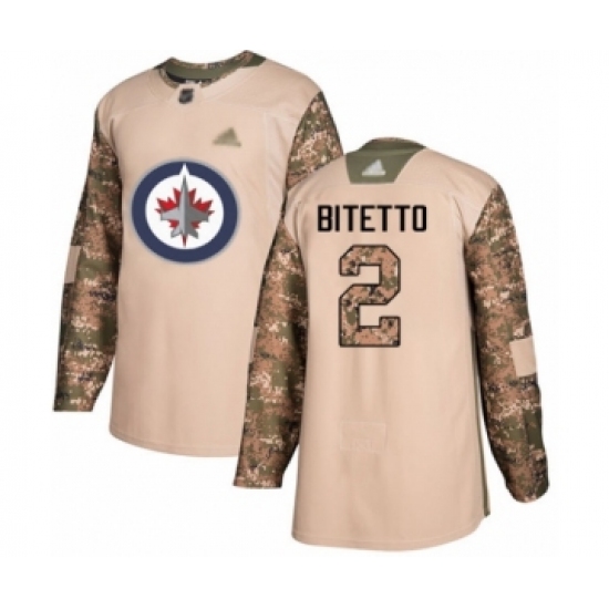 >Youth Winnipeg Jets #2 Anthony Bitetto Authentic Camo Veterans Day Practice Hockey Jersey