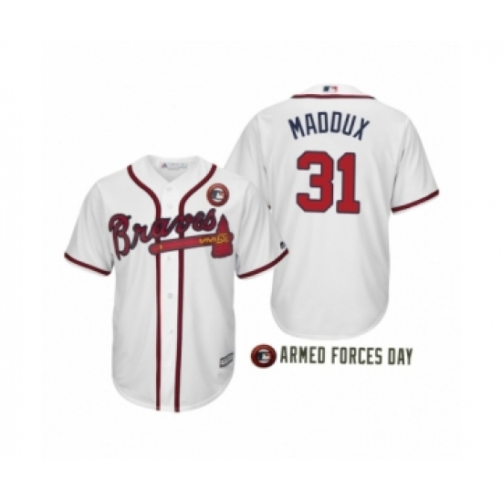 >Men's 2019 Armed Forces Day Greg Maddux #31 Atlanta Braves White Jersey