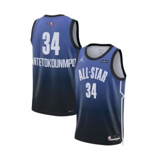 >Men's 2023 All-Star #34 Giannis Antetokounmpo Blue Game Swingman Stitched Basketball Jersey