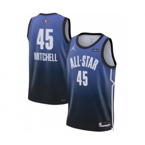 >Men's 2023 All-Star #45 Donovan Mitchell Blue Game Swingman Stitched Basketball Jersey