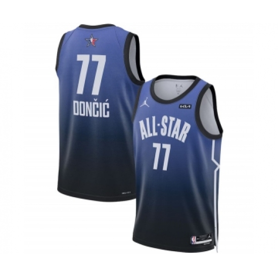 Men's 2023 All-Star #77 Luka Doncic Blue Game Swingman Stitched Basketball Jersey