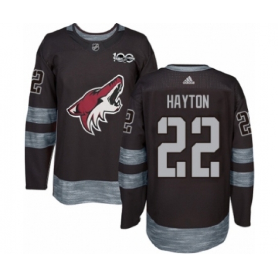 Men's Adidas Arizona Coyotes #22 Barrett Hayton Authentic Black 1917-2017 100th Anniversary NHL Jersey