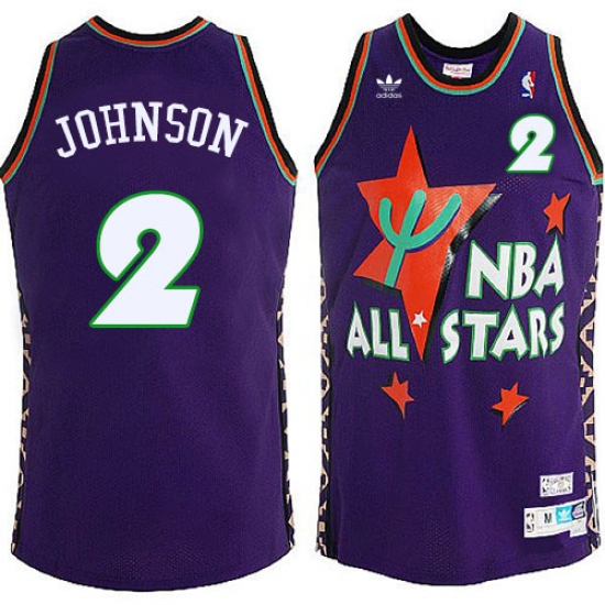 Home>NBA>Charlotte Hornets>Larry Johnson>Men's Adidas Charlotte Hornets #2 Larry Johnson Authentic Purple 1995 All Star Throwback NBA Jersey