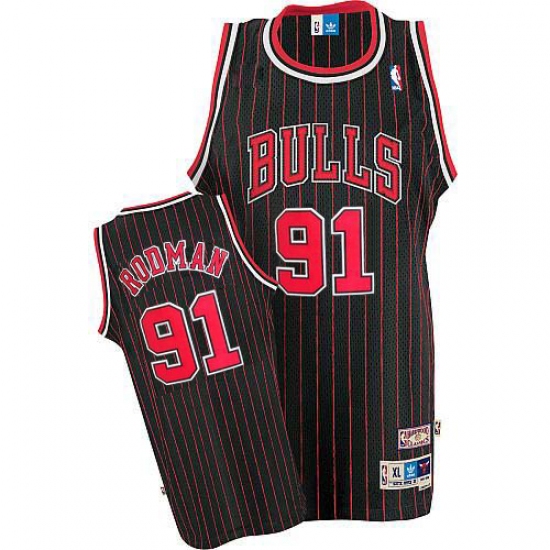 Men's Adidas Chicago Bulls #91 Dennis Rodman Swingman Black/Red Strip Throwback NBA Jersey