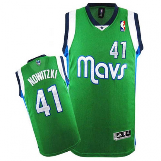 Home>NBA>Dallas Mavericks>Dirk Nowitzki>Men's Adidas Dallas Mavericks #41 Dirk Nowitzki Authentic Green NBA Jersey