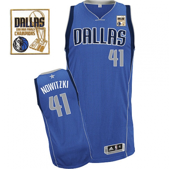 Home>NBA>Dallas Mavericks>Dirk Nowitzki>Men's Adidas Dallas Mavericks #41 Dirk Nowitzki Authentic Royal Blue Road Champions Patch NBA Jersey