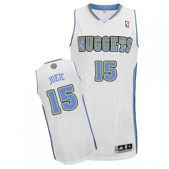 Home>NBA>Denver Nuggets>Nikola Jokic>Men's Adidas Denver Nuggets #15 Nikola Jokic Authentic White Home NBA Jersey